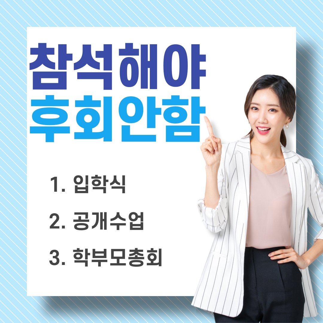 학교 행사와 담임선생님의 학급 연간계획, 학급 규칙, 준비물 등을 자세히 들을 수 있는 시간이니 가급적 참석하는 것이 좋습니다. 방과 후 프로그램 구성 학부모회 구성 담임교사 선생님과의 만남 등이 있으니 미리 궁금한 사항들을 생각해 가시면 참석했을 때 도움이 됩니다